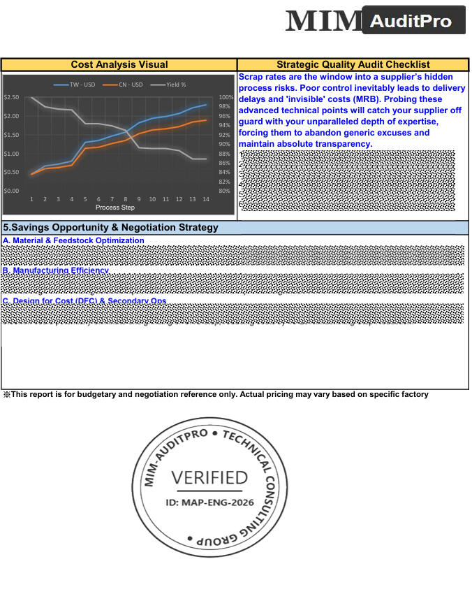 • Disclaimer: Reports provided by MIM-AuditPro are for technical and budgetary reference only. They do not constitute a legal contract for manufacturing or a guarantee of final supplier pricing.