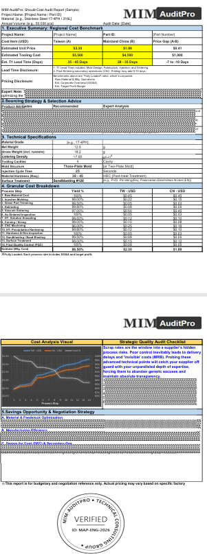 • Disclaimer: Reports provided by MIM-AuditPro are for technical and budgetary reference only. They do not constitute a legal contract for manufacturing or a guarantee of final supplier pricing.